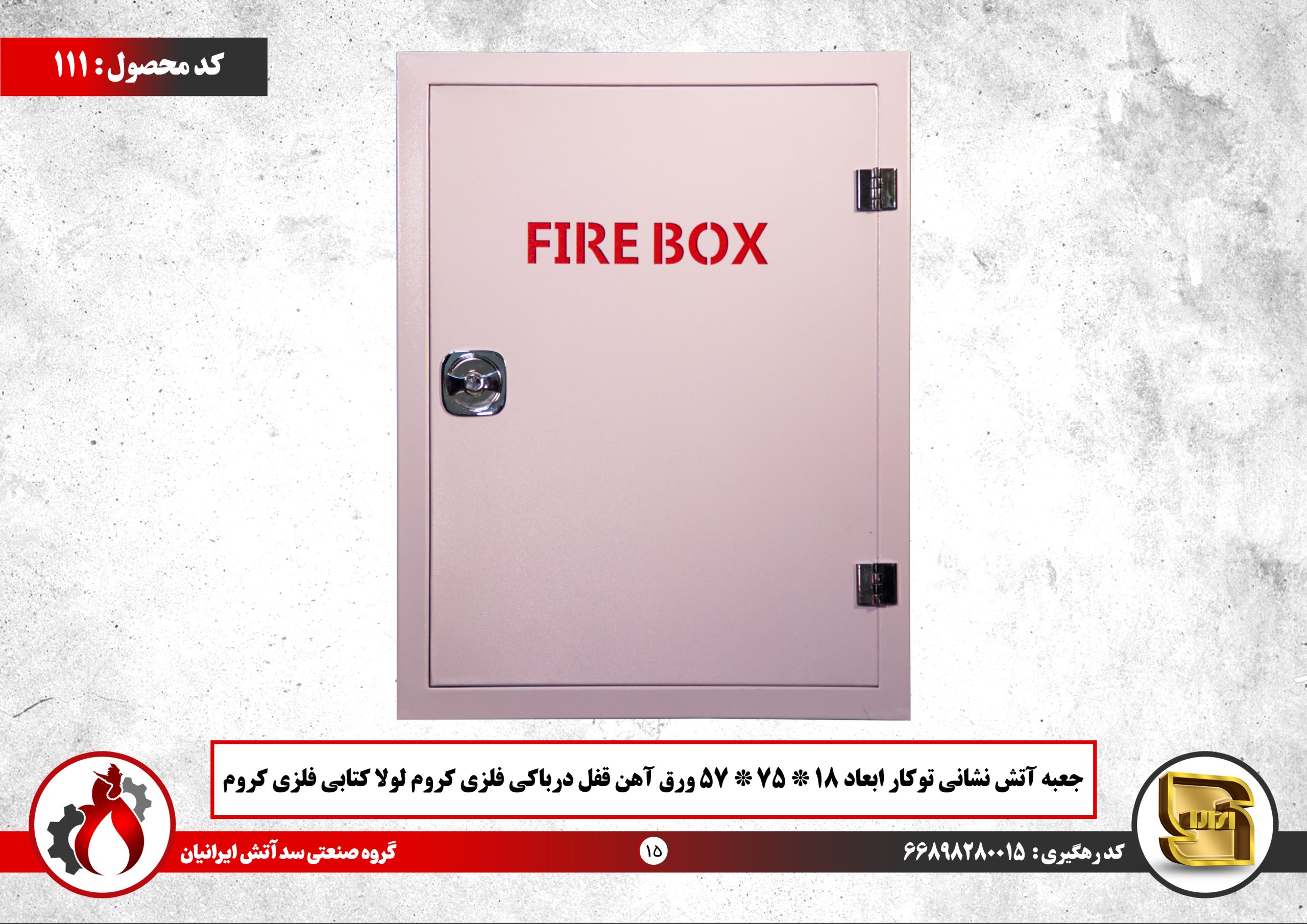 جعبه آتش نشانی توکار ابعاد 18*75*57 ورق آهن قفل در باکی فلزی کروم لولا کتابی فلزی کروم